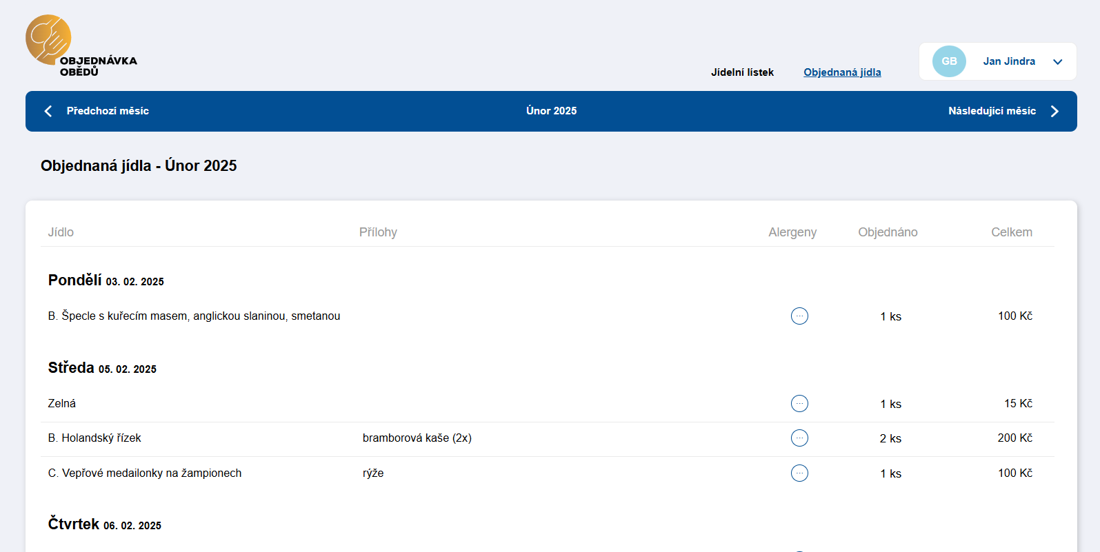 Objednání jedním klikem - strávník si vybere jídlo a zaškrtne jej - není třeba dále nic potvrzovat. Objednává jídlo rovnou na celý týden.